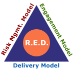 Digiprotek has developed a unique and proprietary working model that represents the critical success factors for any initiative to succeed and deliver business results and that includes an offshore component. We refer to this as our R.E.D model that embeds Risk management, Engagement and Delivery.